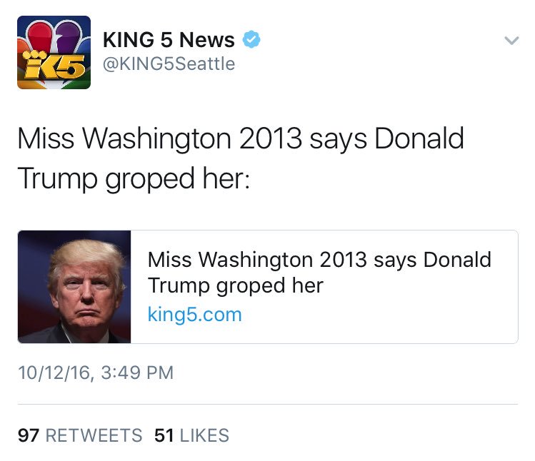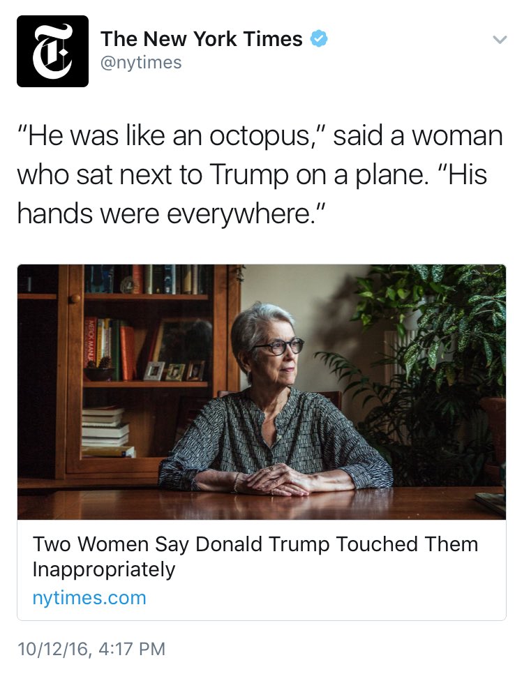 I don't want to minimize the possibility of anyone being assaulted but at this point a beauty queen that he kissed on the cheek can pretty much claim Trump did something inappropriate. It's very hard if not downright impossible to disprove negatives such as these. I just think this all seems very scripted and these woman's claims are far too closely mirroring the bus comments. Like I said though if something did happen to these woman they certainly have the right to come forward and be heard. It's just very hard for me to take a claim from 35 years ago seriously. Once you cast doubt on one of the claims it's easier to cast doubt on the others. Who's looking for their 15 minutes? Who's looking to write a book? Who's looking for money? If it was so bad why wasn't it reported then?