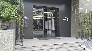 An automatic door is a door that opens automatically, usually on sensing the approach of a person.