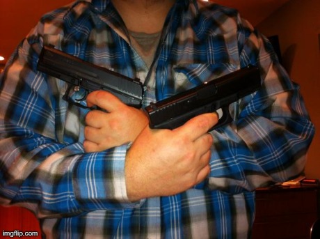 (edit: my fingers are behind the triggers, not on them. Also, they are unloaded in that pick, no clips and none in the chamber. )