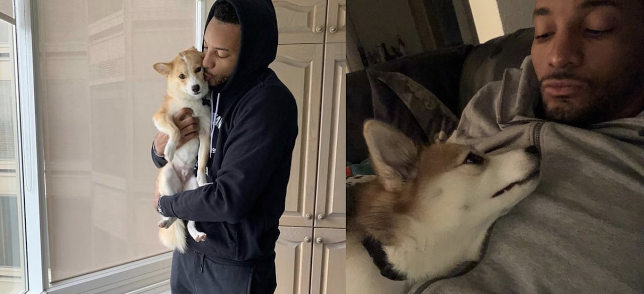 Trail Blazers forward Norman Powell with his Pomsky dogs. That's Odin on the left and Apollo on the right.
