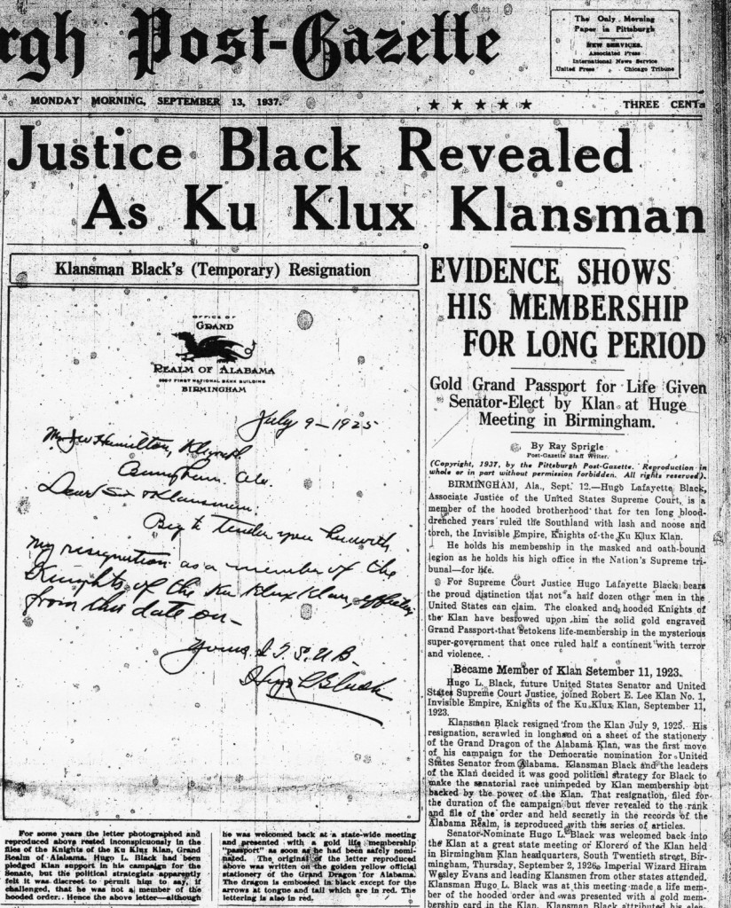 Even worse, FDR appointed prominent Ku Klux Klan member Hugo Black to the Supreme Court. Black’s involvement in the KKK was confirmed by Pittsburgh Post-Gazette journalist Ray Sprigle, a journalist who won a “Pulitzer Prize for Reporting” for his exposé.