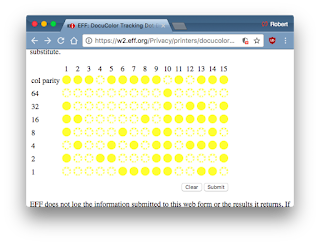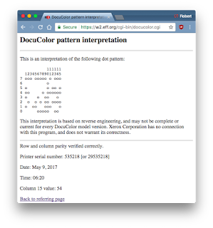 The second is that when they print things out, they includes these invisible dots, so documents can be tracked.