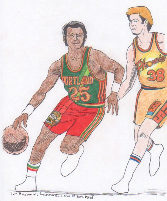 It's nice, although it doesn't feel very Trail Blazers-ish. Oddly enough, it feels more like a design for another NBA franchise that used to play in the Pacific Northwest -- the SuperSonics. (And in case you're wondering, the Sonics' uniforms had nothing to do with the Seattle flag.)