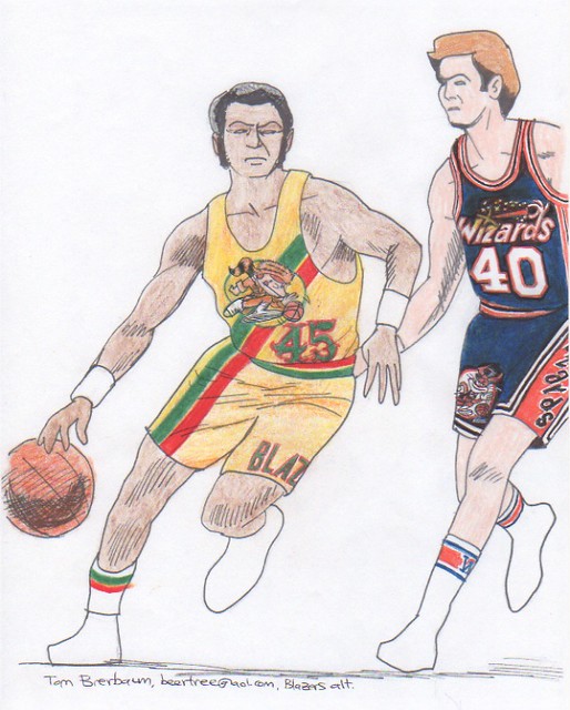4. Best Designs by the Guy Who Always Keeps Us Guessing: Every time we run one of these contests, reader Tom Bierbaum can be counted upon for two things: a groovy little mascot character and some awesome uniforms for teams that have nothing to do with the contest at hand. His Blazers designs are interesting, but check out the opposing players -- those are some killer jersey concepts for the Raptors, Suns and Wizards: